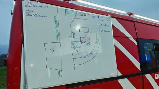 Im Anschluss an den Innenangriff wurde ein umfassender Löschangriff durchgeführt, um das angenommene Brandgeschehen unter Kontrolle zu bringen.