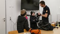 Hier erfuhren die Kinder, wie schwer eine vollständige Schutzausrüstung ist und welche wichtige Aufgabe das Atemschutzgerät bei Einsätzen erfüllt.